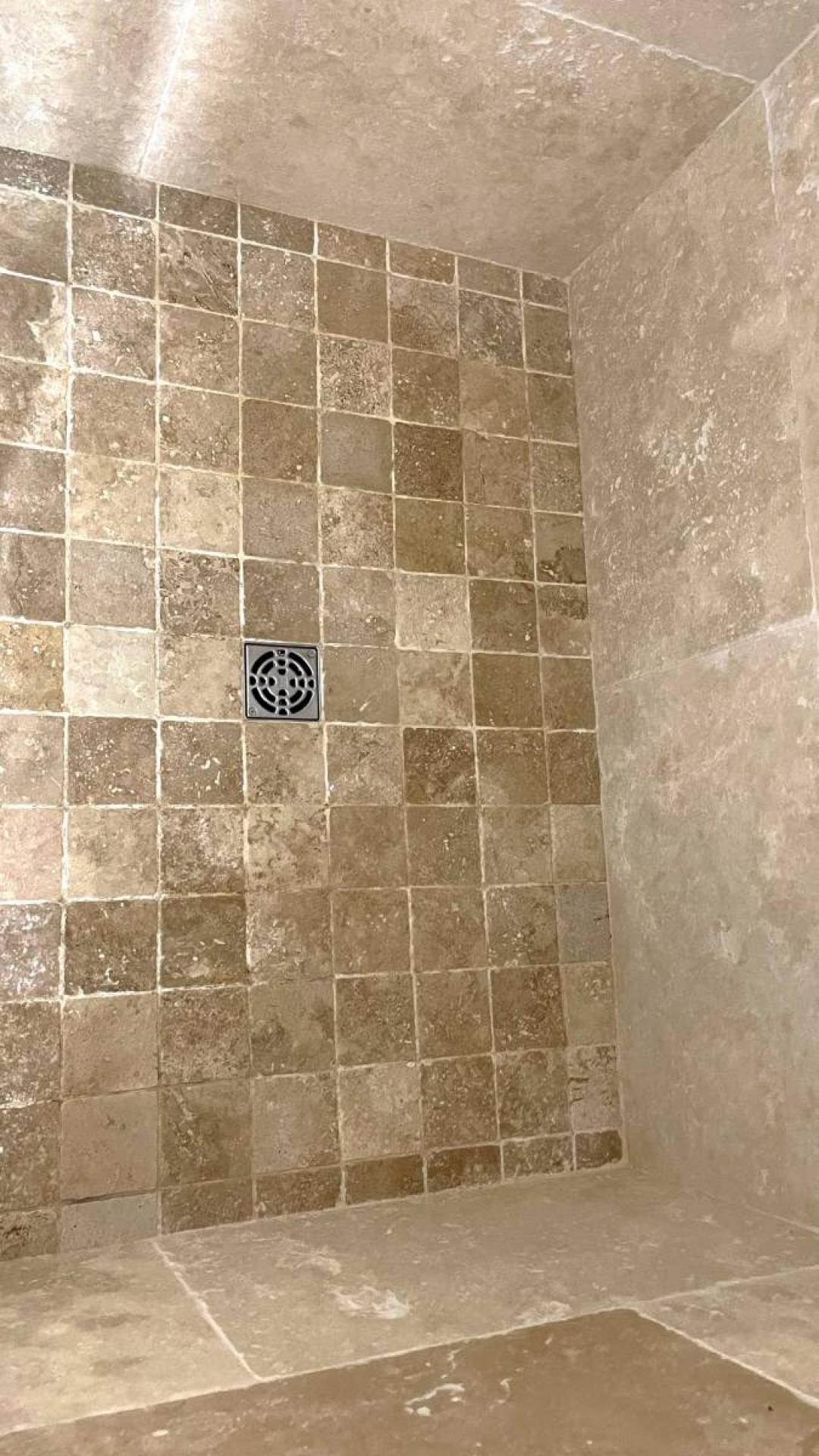 Travertin sol receveur et parement faïence murale de douche Bordeaux Nouvelle Aquitaine