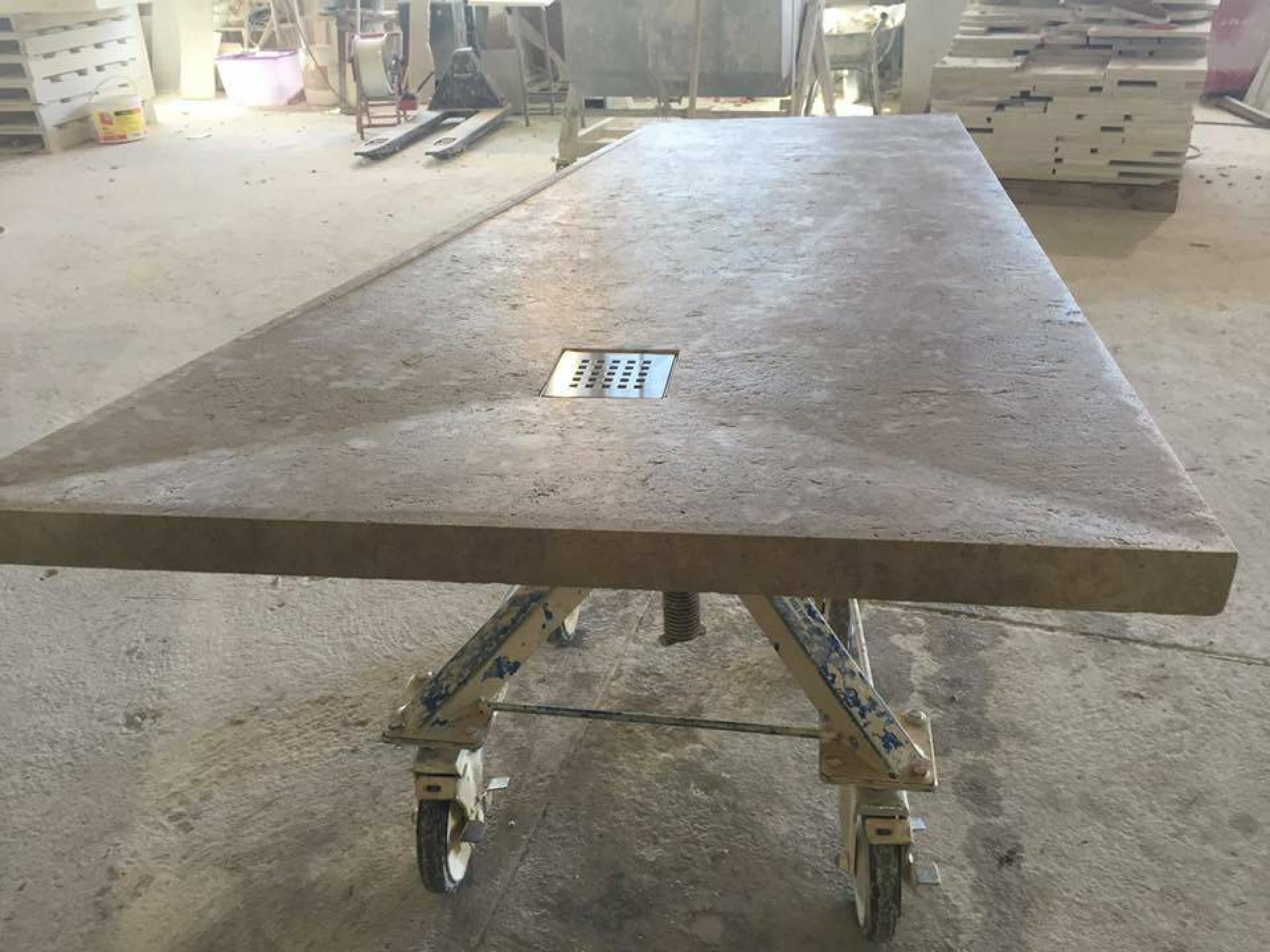 Pierre naturelle Grise du Maroc Gris ATLAS, dallage, plinthe, margelle, pavé, tomette en finition vieillie et patinée à la main.