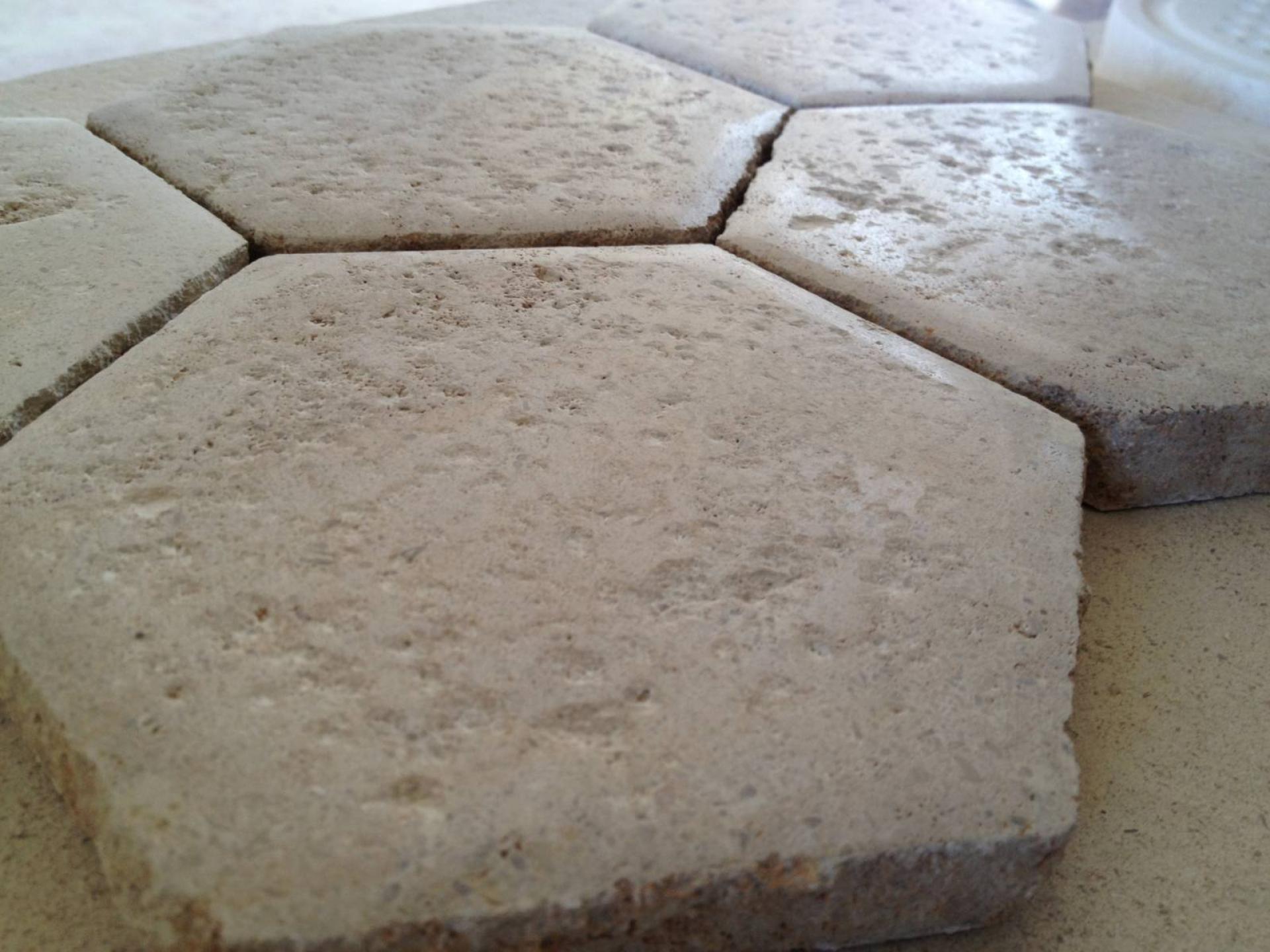 Le travertin provient de la Turquie c'est un calcaire sédimentaire résistant et très dur.
