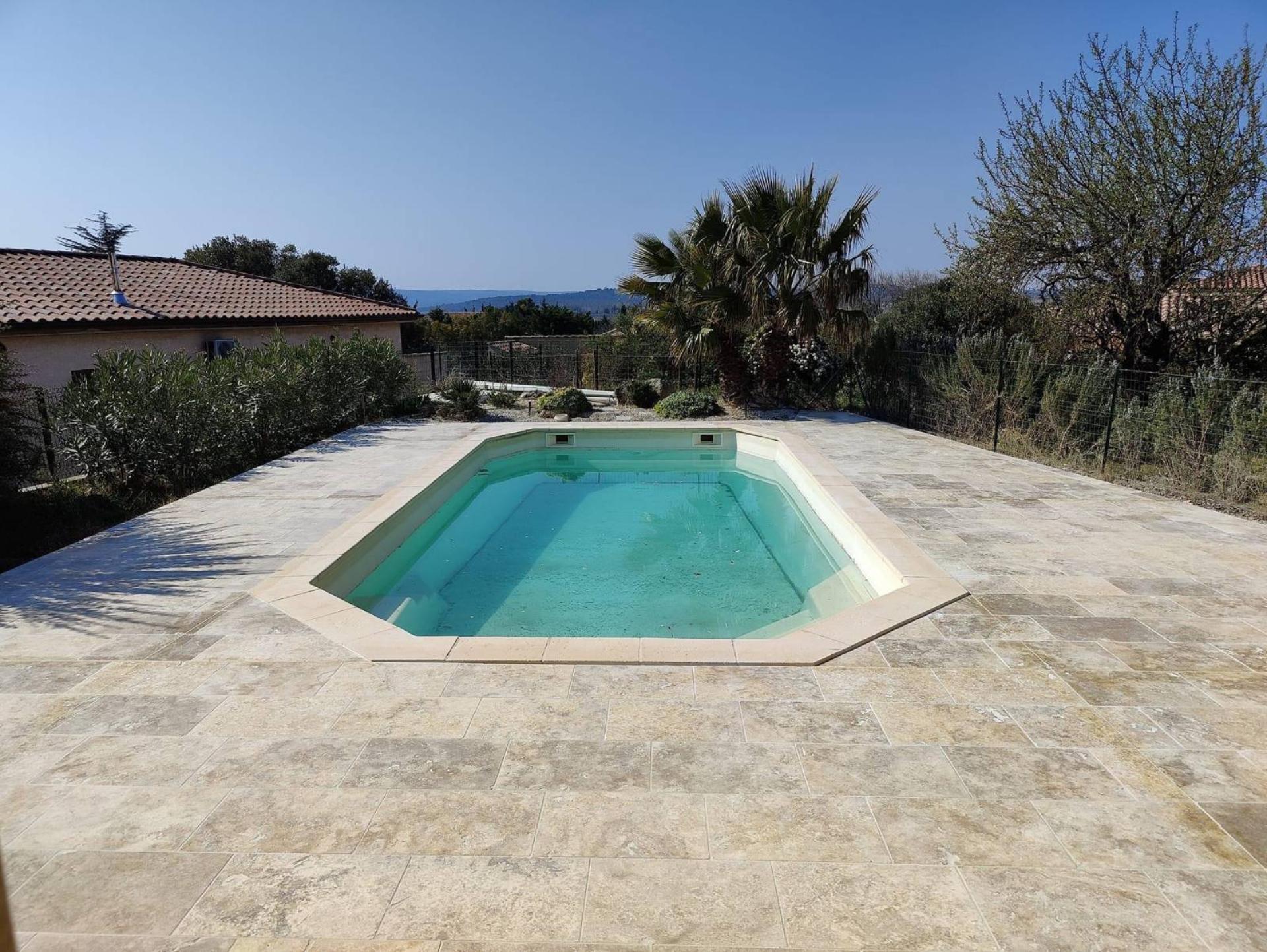 Travertin pierre pour terrasse et plage de piscine en extérieur à Bordeaux.